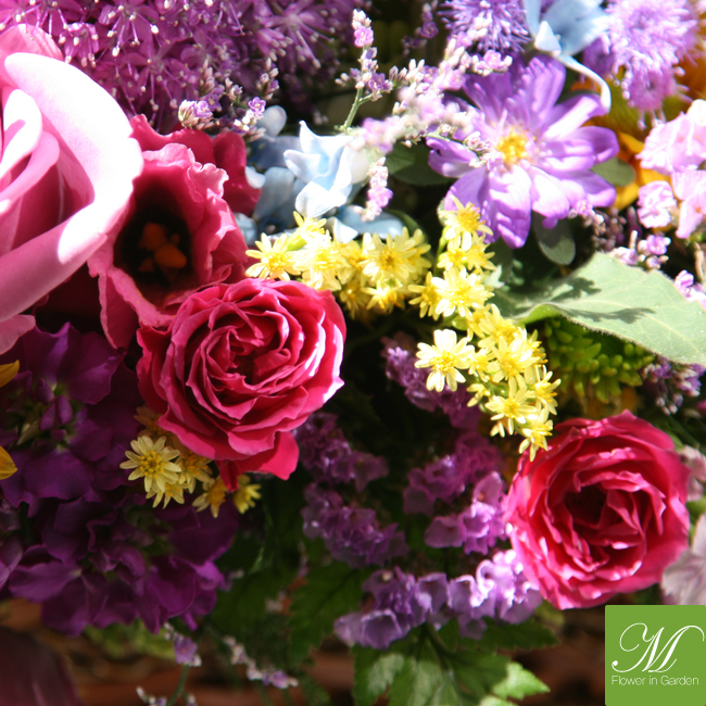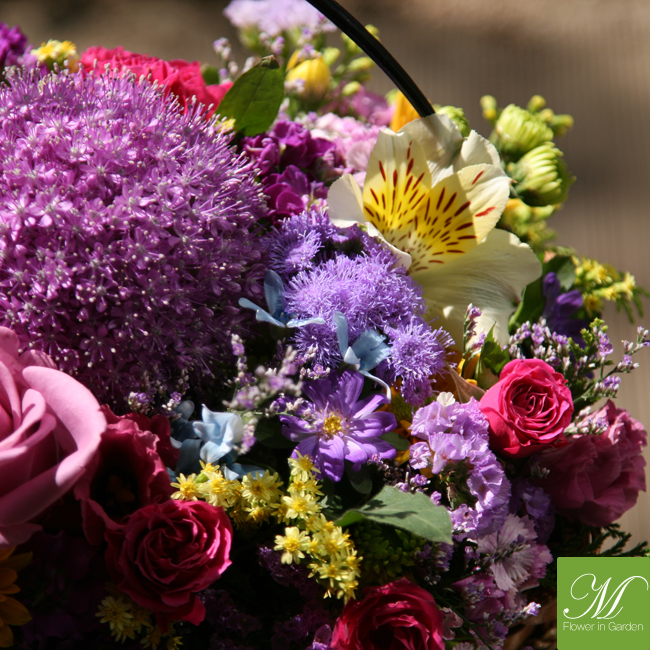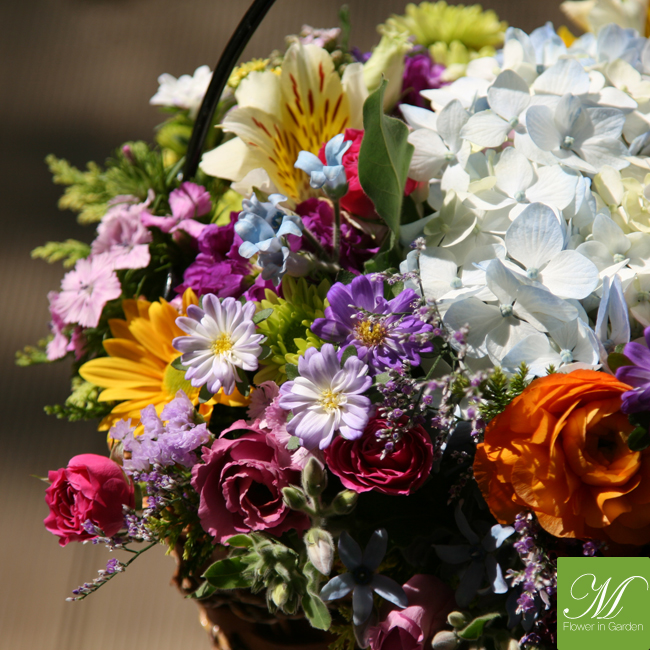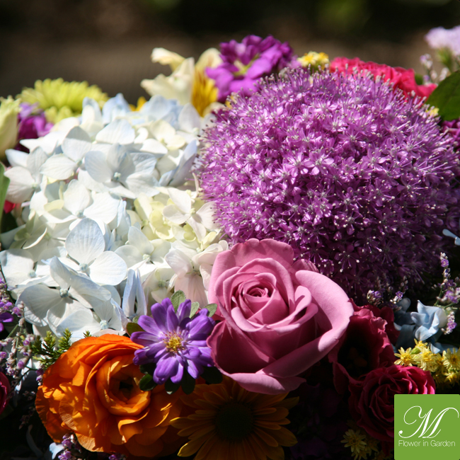 ▒ 소재명 : 수국, 알륨, 니시얀샤스, 소국, 장미, 스타티스, 스프레이카네이션, 편백, 과꽃,알스트로멜리아